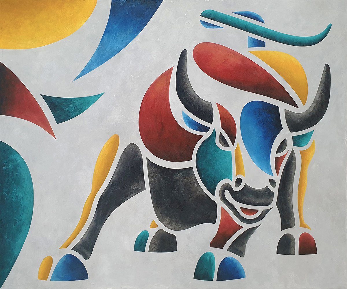 Charging Bull is a compelling exploration of resilience, ambition, and the primal spirit of courage, making it a striking centerpiece for any collection of contemporary abstract art.