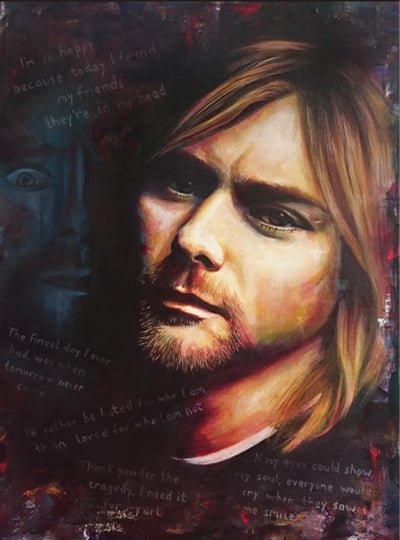 Whether you're a devoted fan of Nirvana or a collector of emotive, music-inspired art, this piece is a poignant tribute to Kurt Cobain’s enduring impact and raw artistic voice.