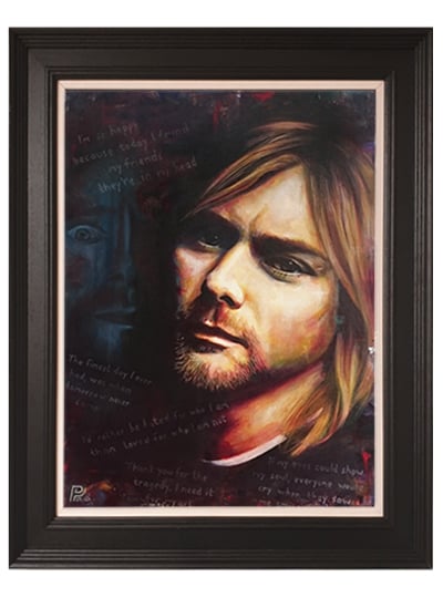 Own a unique piece that celebrates the raw power and spirit of Kurt Cobain through Pat Purcell’s bold and passionate artistry.